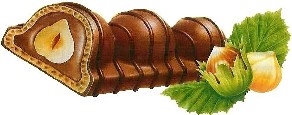 gaufrette, une crème de noisette et cacao, et trois noisettes entières